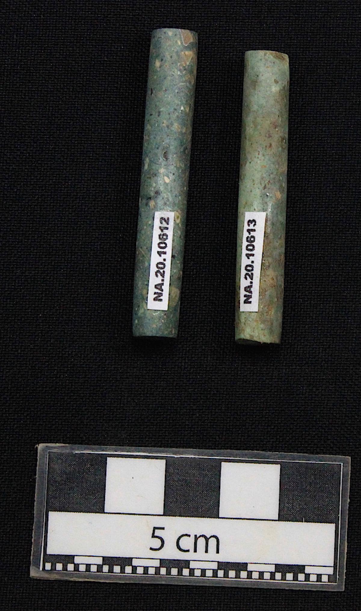 Commentary:  Pair of green stone ear rods.