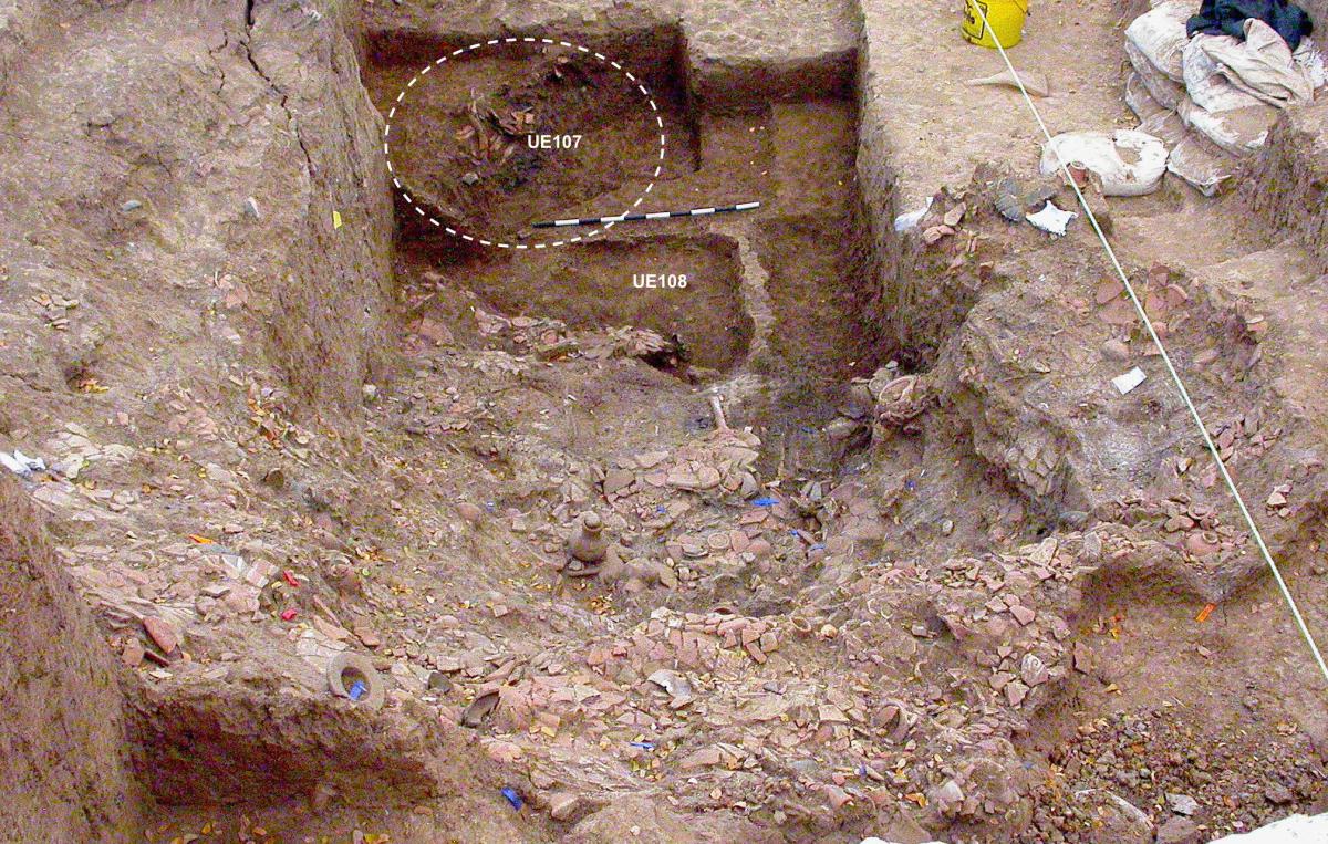 Commentary:  View of the fill and its relation to unit UE107.