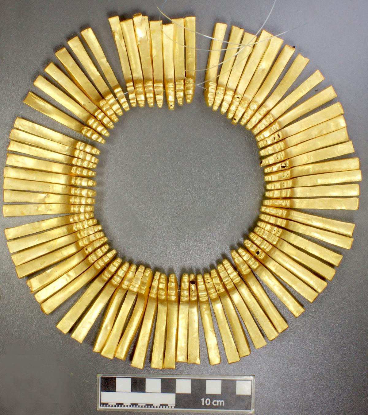 Commentary:  Burial with necklace or choker of feather type beads. Panamá Viejo.