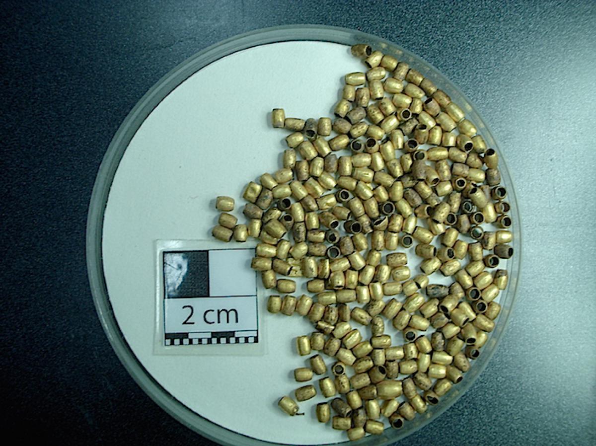 Commentary:  Group of gold barrel beads on the neck of EU I7134