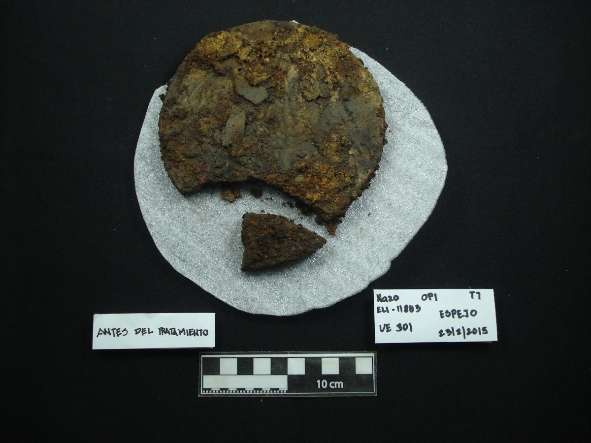 Commentary:  Mirror of pyrite before treatment. Upper face.