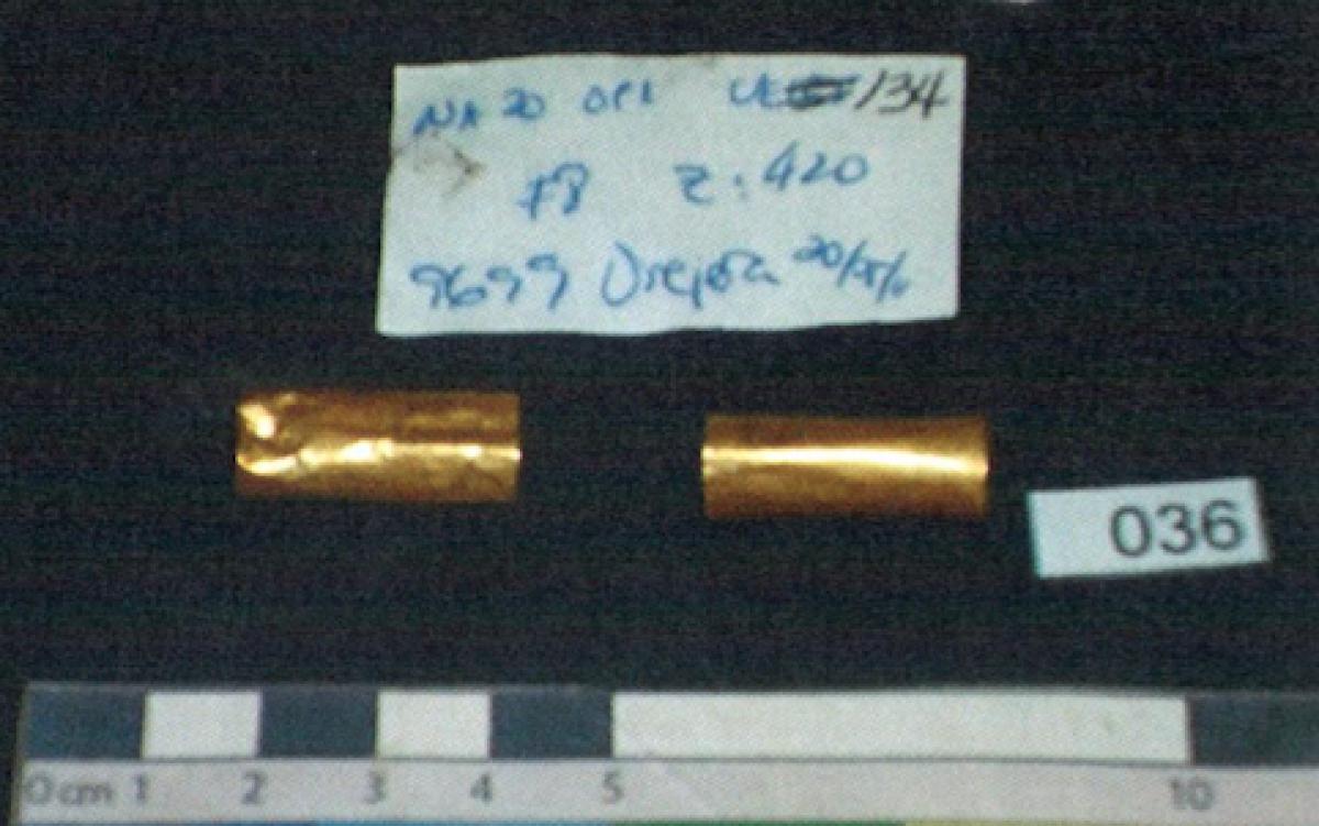 Commentary:  Gold sheathings of a wooden ear rod.