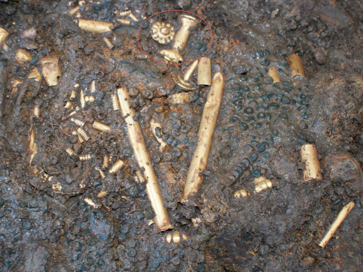 Commentary:  Artifacts from the package deposited on the I7 individual. Among them was found the ear rod cap registered on this card.