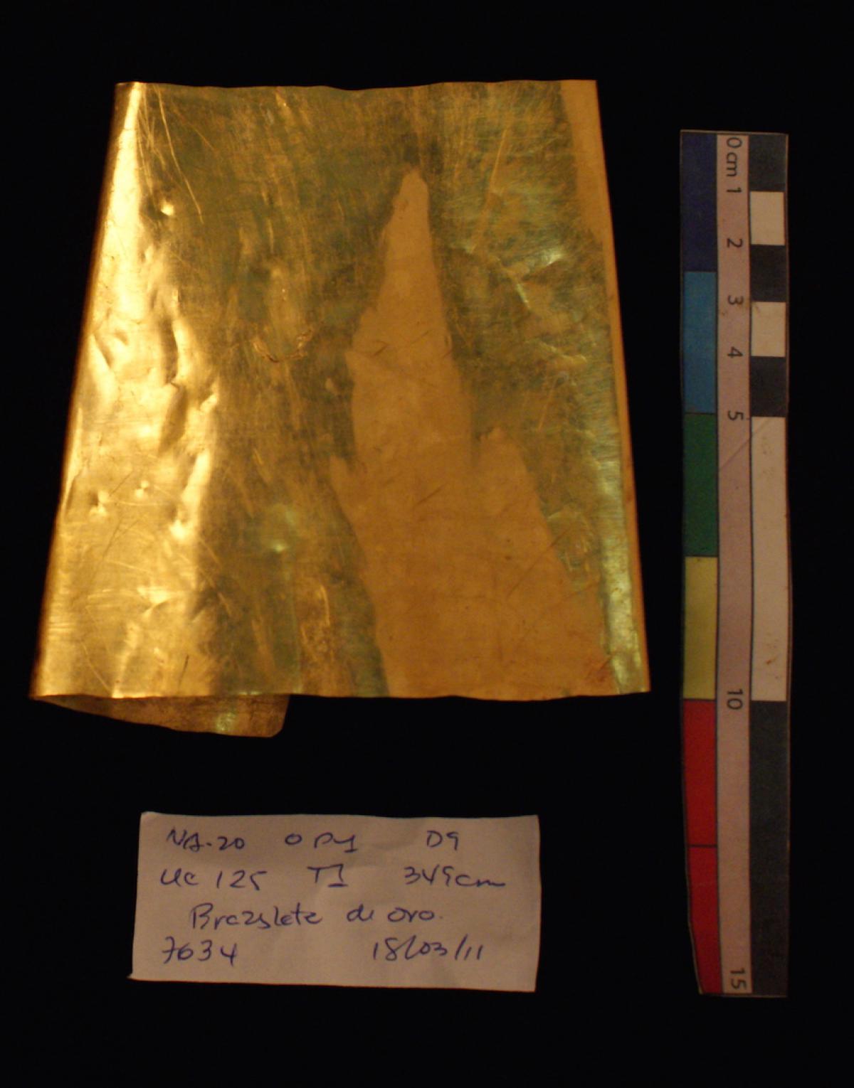 Commentary:  Interior view of the cuff. Fragments of the ulnar and radius bones were found in it. These were removed and kept separately.