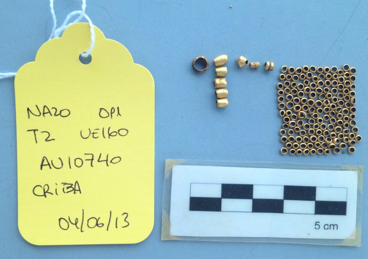 Cuentas de oro recogidas en la criba.