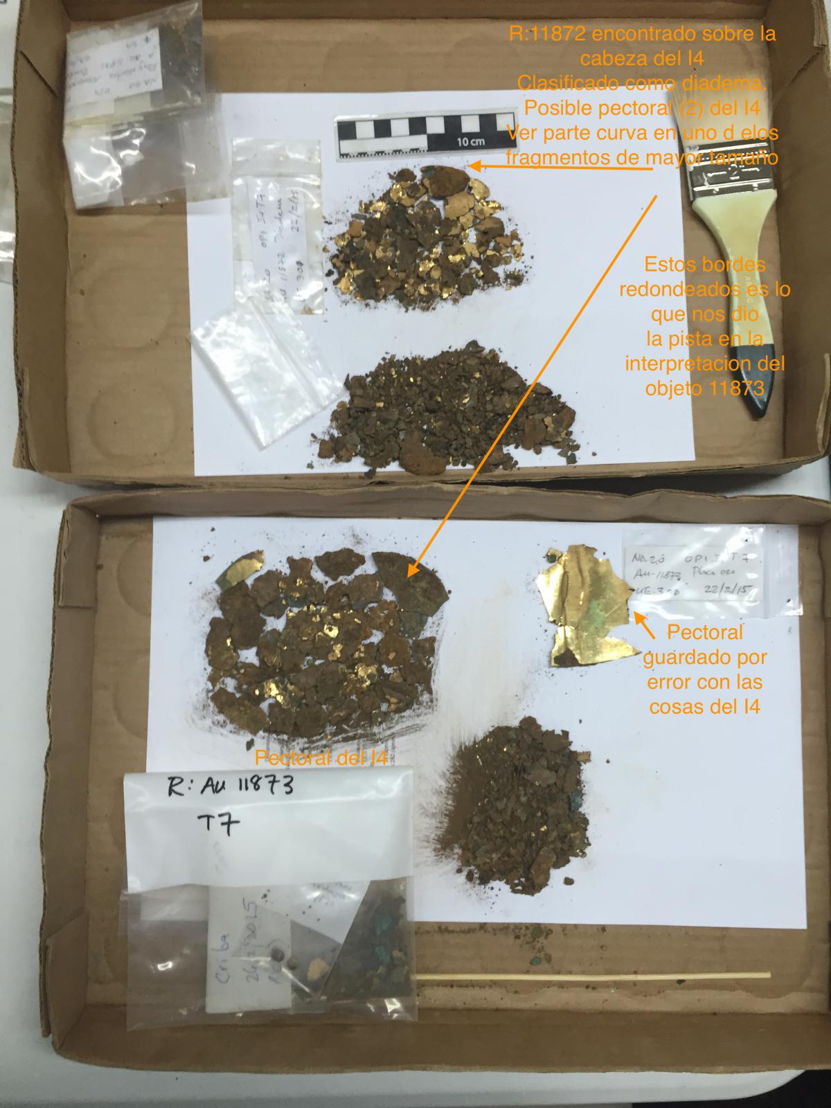 Parte de los cuerpos, ajuares y ofrendas de la unidad UE106 se deslizaron sobre el entierro del tercer nivel de la tumba T2, razón por la cual no...