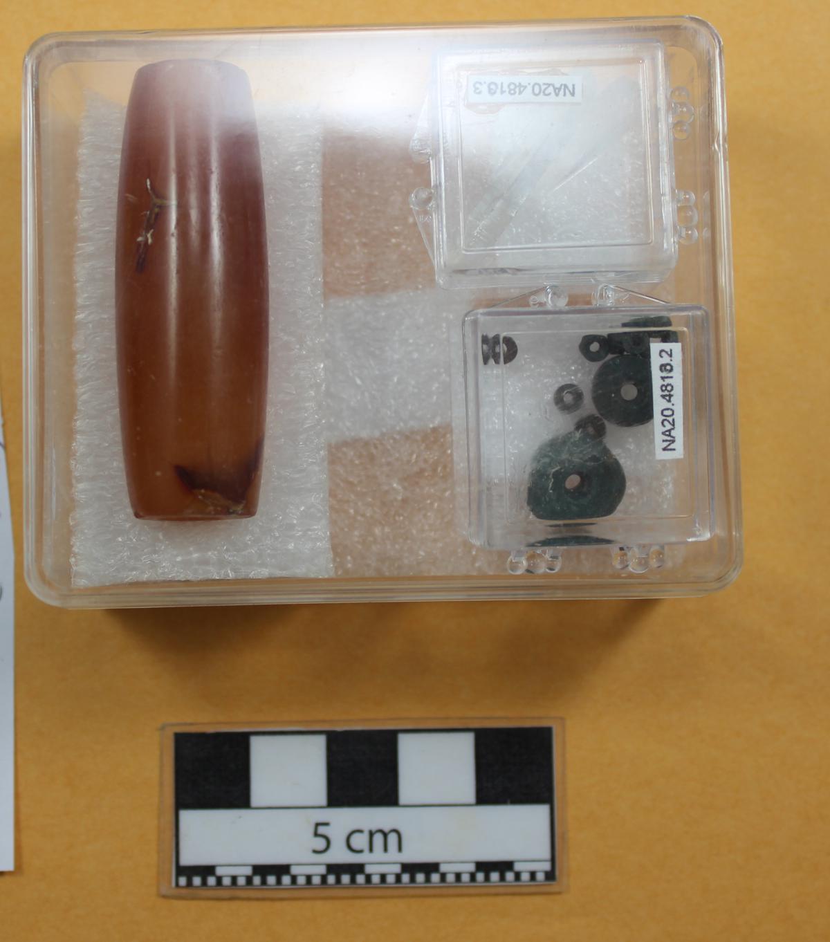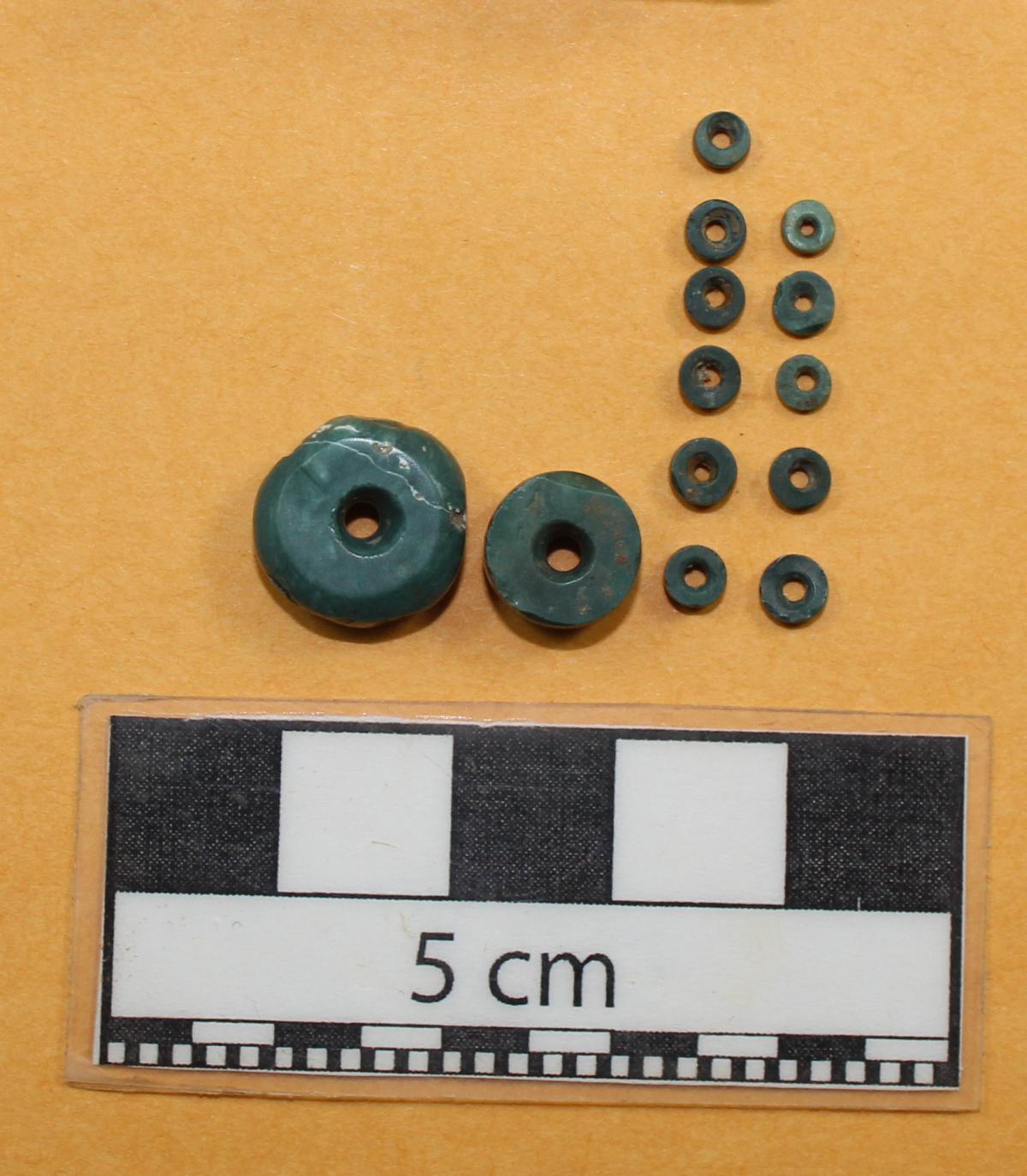 Información del recurso:  Conjunto de artefactos encontrados junto con las cuentas verdes.