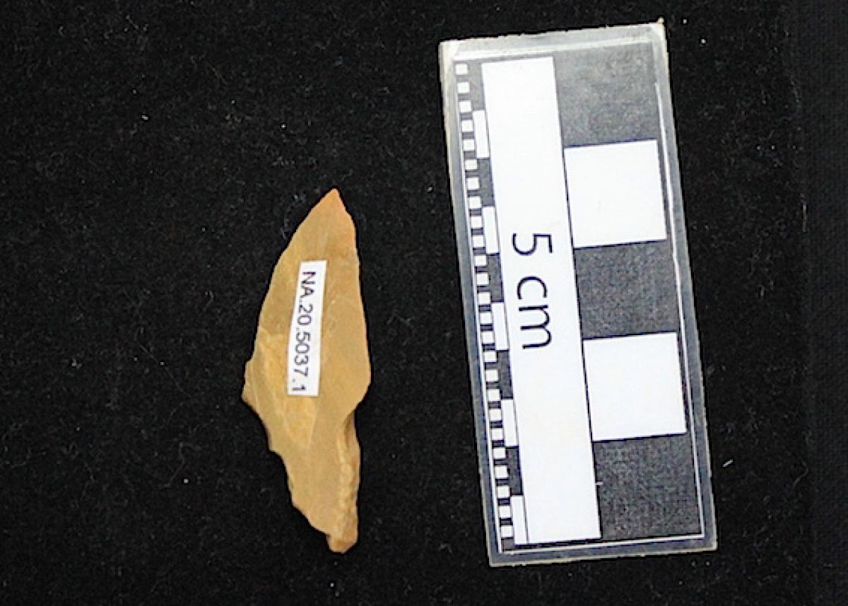 Información del recurso:  La punta con número de registro 5037.1 apareció junto con otra de calcedonia roja, con número de registro 5037.2.