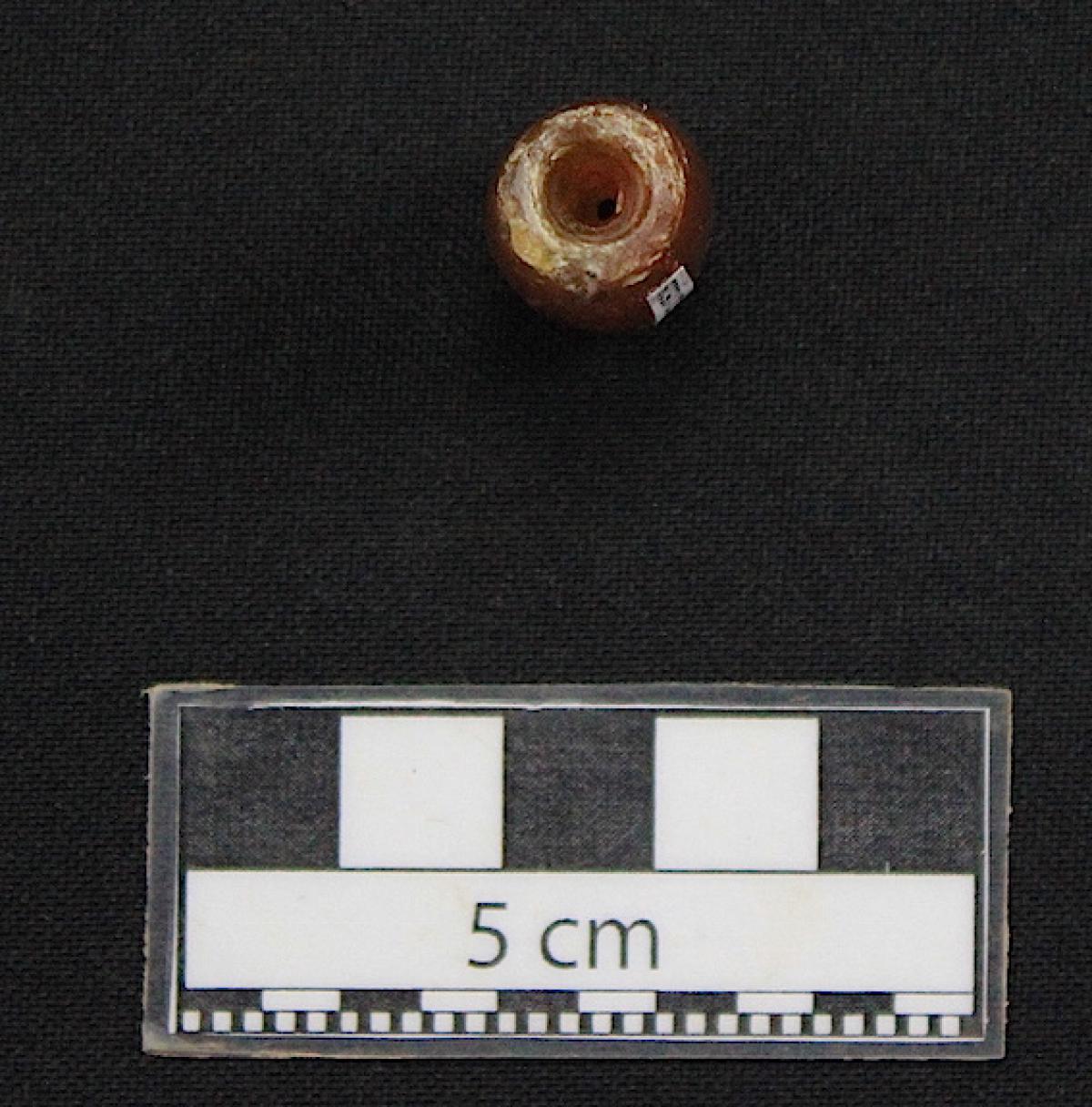 Información del recurso:  Cuenta de piedra. Vista de la perforación del artefacto.