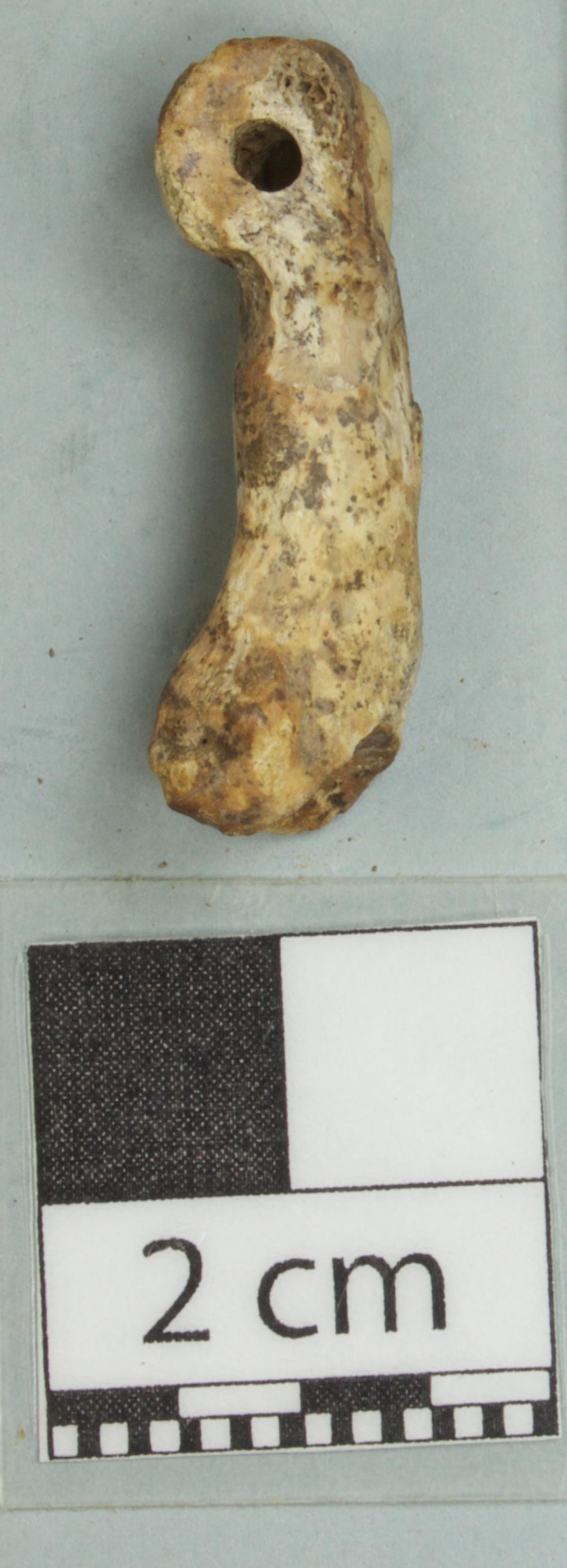 3592 - Canino de perro perforado. Aunque se encuentra fragmentado, se conservan sus partes.