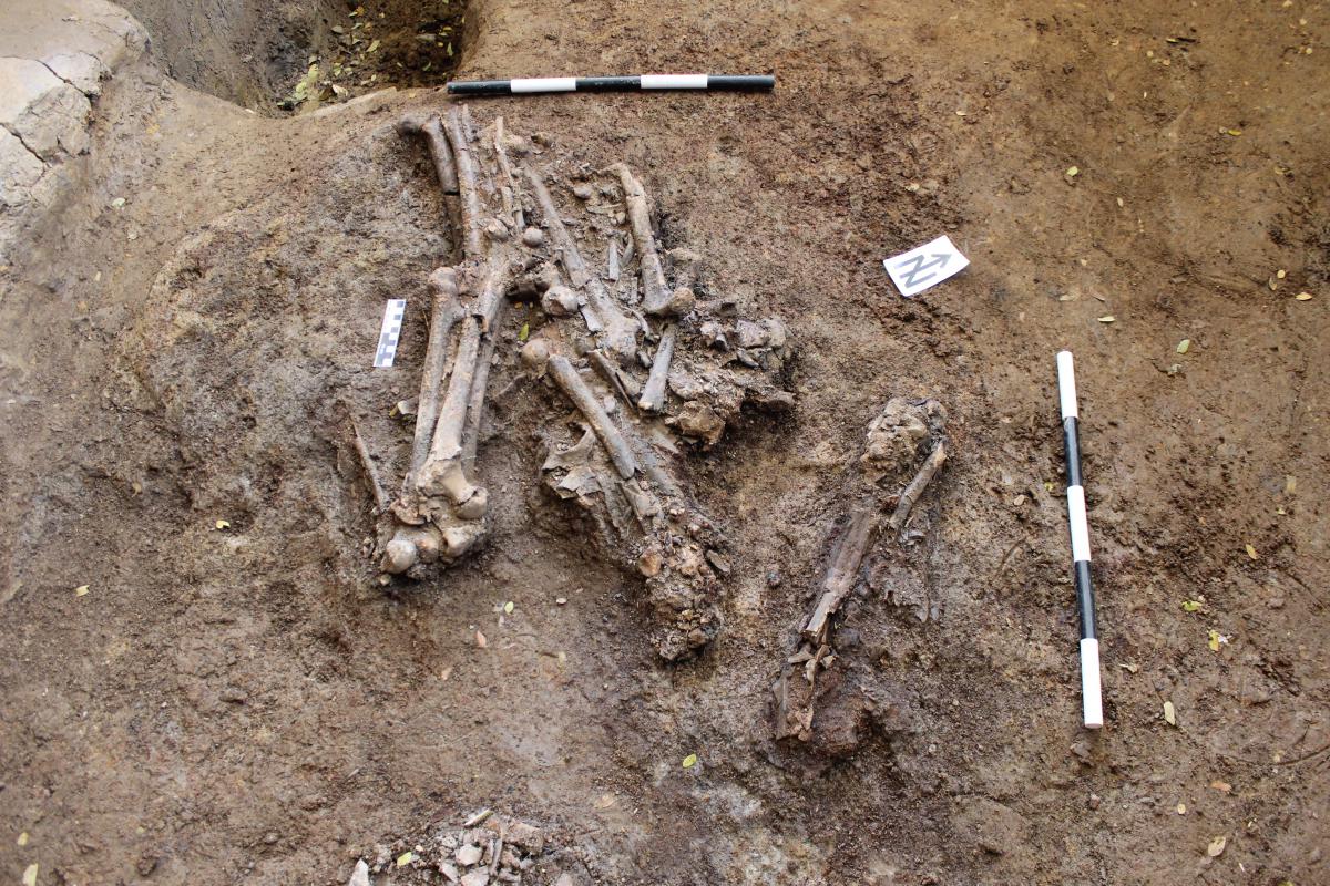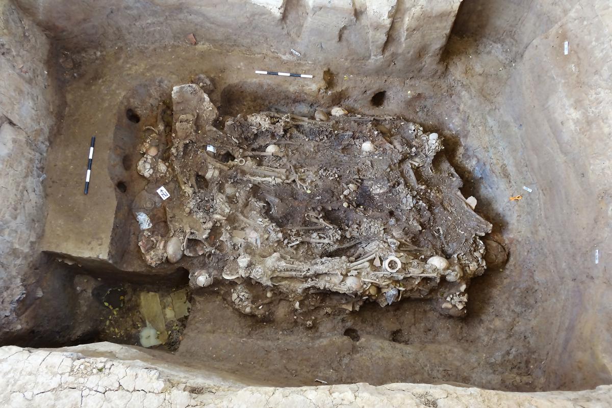 381 - T6-UE125 (a , (llamado en el año 2013, unidad UE167).Entierro de la tumba T6. Depósito de huesos humanos en posición primaria localizado a 3,48 m de profundidad. Es un entierro múltiple...