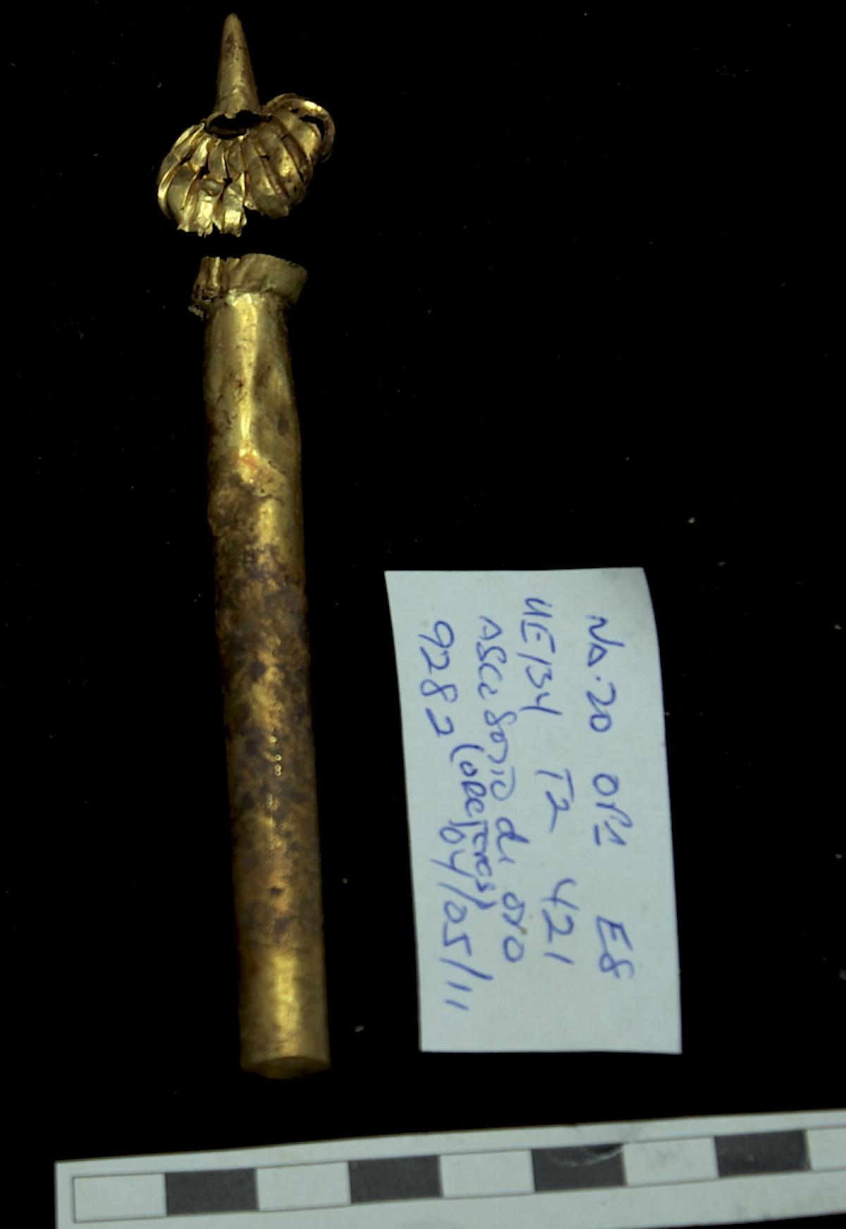434 - Funda de oro de orejera de madera. Corresponde con el tapón registro# 5371.