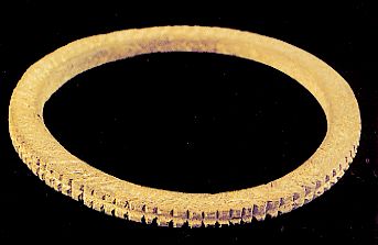 2211 - Pequeño fragmento de una fina placa, dorada por las dos caras, aparecida e...