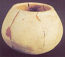 76 - Vasija con forma de copa de pasta de color crema, borde recto, cuerpo esf...