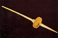 56 - Tortero de ceramica de forma bicónica, con orificio central para la inser...