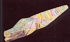 32 - Figura antropomorfa esquemática con incrustaciones de avalorios (rojo y ne...