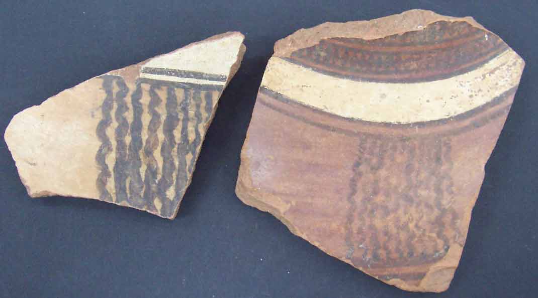 2189 - Plato cerámico trípode con decoración geométrica pintada y excisa.