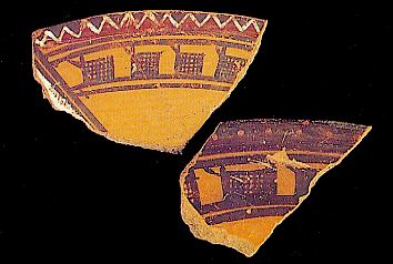 2189 - Plato cerámico trípode con decoración geométrica pintada y excisa.