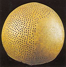 2208 - Cuenta de vidrio de forma globular, más extrecha en una de las extremidade...