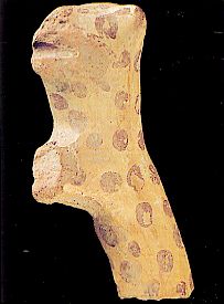 2258 - Pie de vasija cerámica fragmentado representando una figura sólida humana...