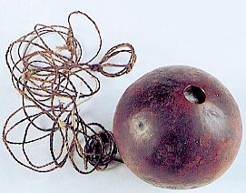 87 - Pequeña pipa realizada con la cáscara de un fruto perforada por dos sitio...