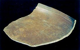 81 - Tortero de arcilla sin decoración de sección semiovalada y fondo plano, u...