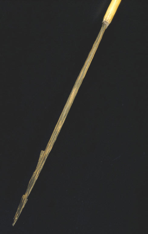 61 - Peine con puas de madera de chonta anudadas y embreadas en uno de sus extre...