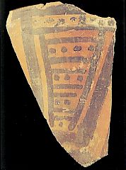 2189 - Plato cerámico trípode con decoración geométrica pintada y excisa.