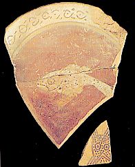 2189 - Plato cerámico trípode con decoración geométrica pintada y excisa.