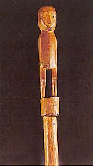 90 - Cabeza antropomorfa de madera de balsa que forma parte de un bastón. Tiene...