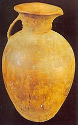 76 - Vasija con forma de copa de pasta de color crema, borde recto, cuerpo esf...