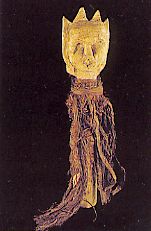 90 - Cabeza antropomorfa de madera de balsa que forma parte de un bastón. Tiene...