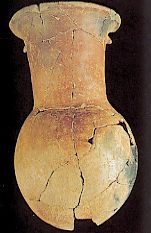 68 - Vasija de cerámica de borde evertido, cuello recto, cuerpo globular y ba...