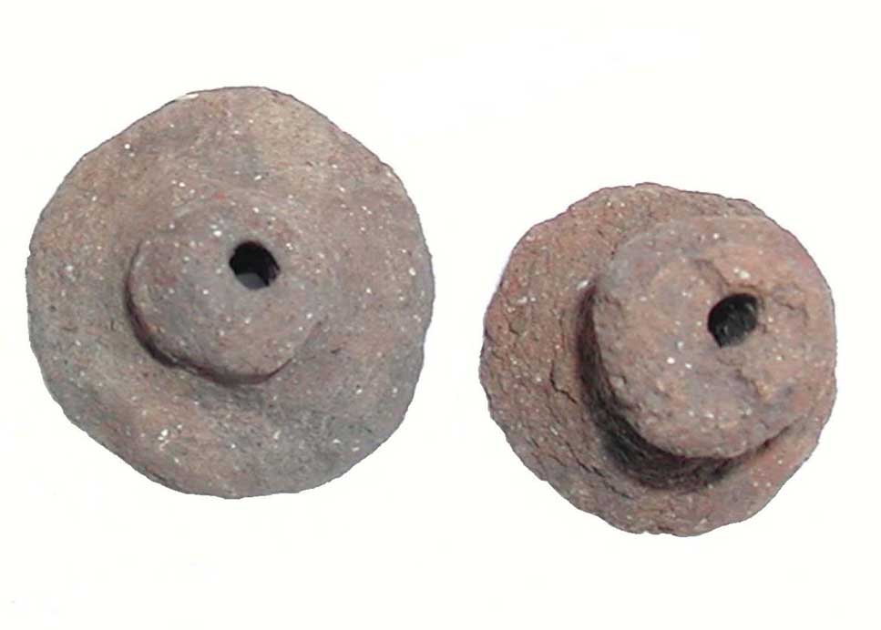 82 - Tortero o fusayola de arcilla sin decoración, de sección semicircular y f...
