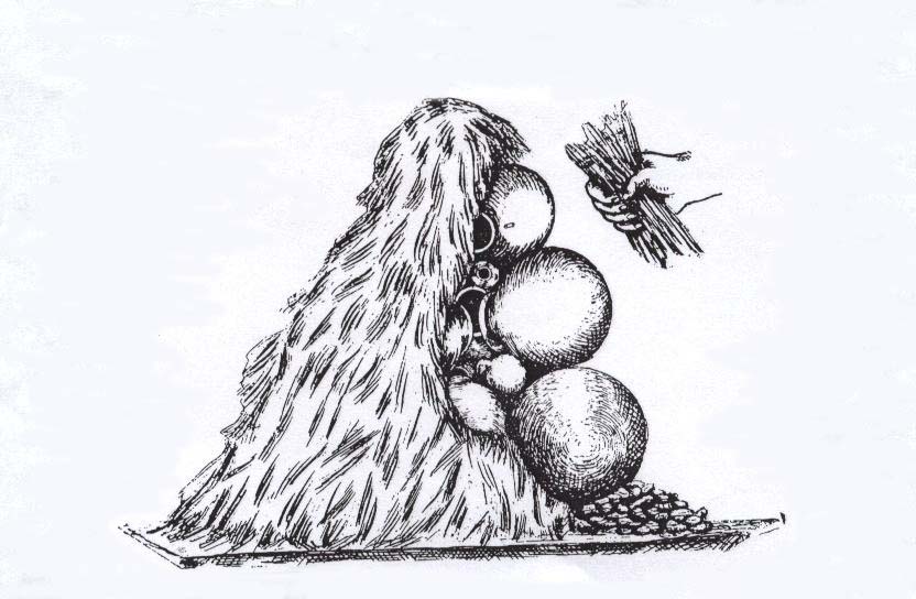 36 - Faldellín compuesto por un gran número de semillas negras insertas en hil...