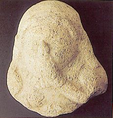 2246 - Fragmento de vástago de pie vasija sólida que representa una cabeza human...