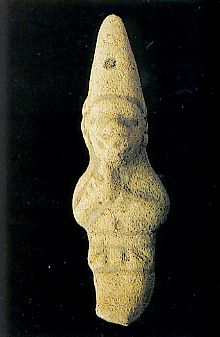 2222 - Vástago sólido del pie de una vasija cerámica. Representa una figura hum...