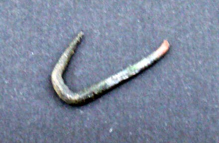 2211 - Pequeño fragmento de una fina placa, dorada por las dos caras, aparecida e...