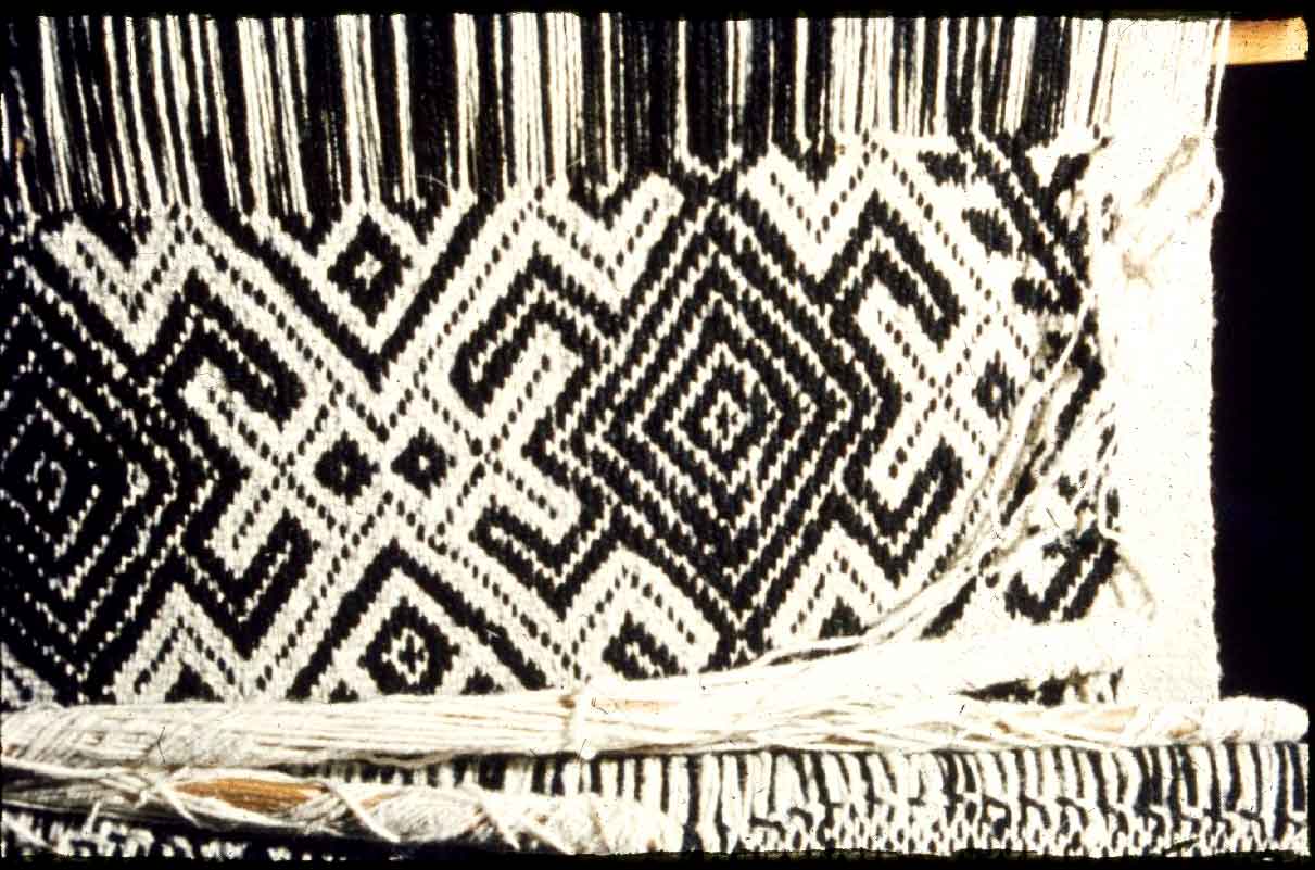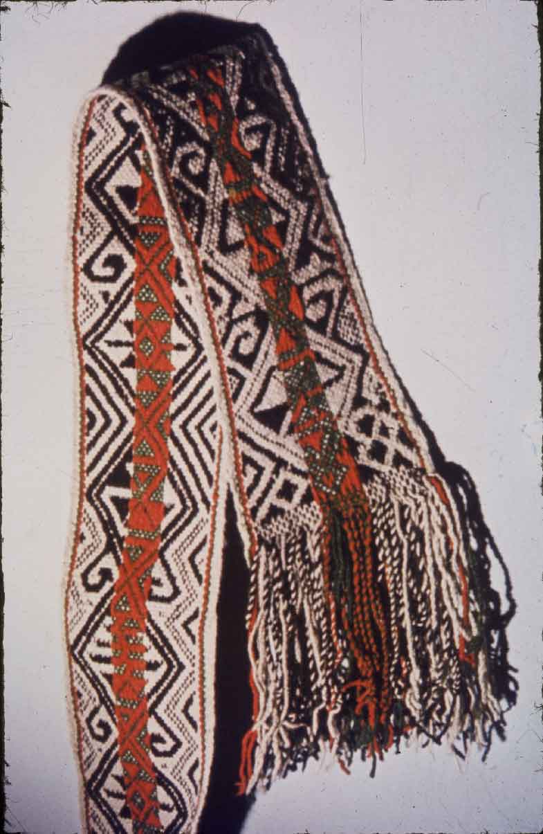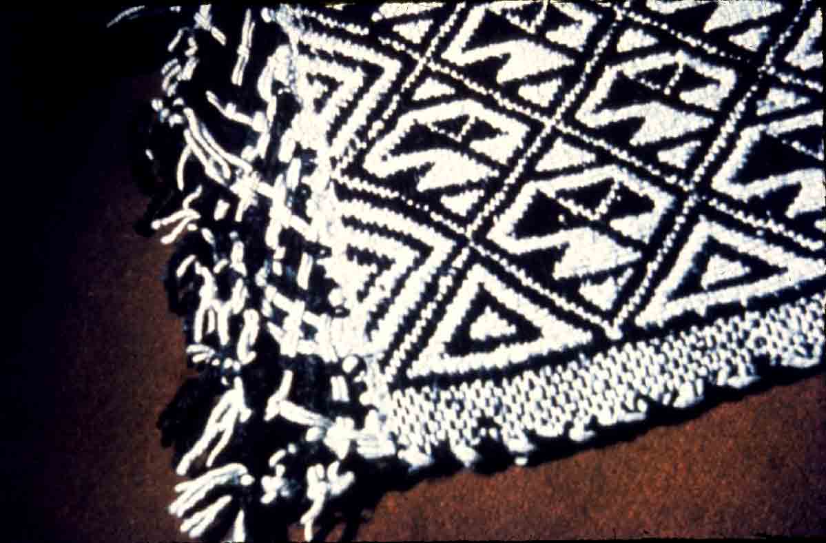 9 - Faja rectangular tejida en bandas paralelas negras y blancas, rematada en ...