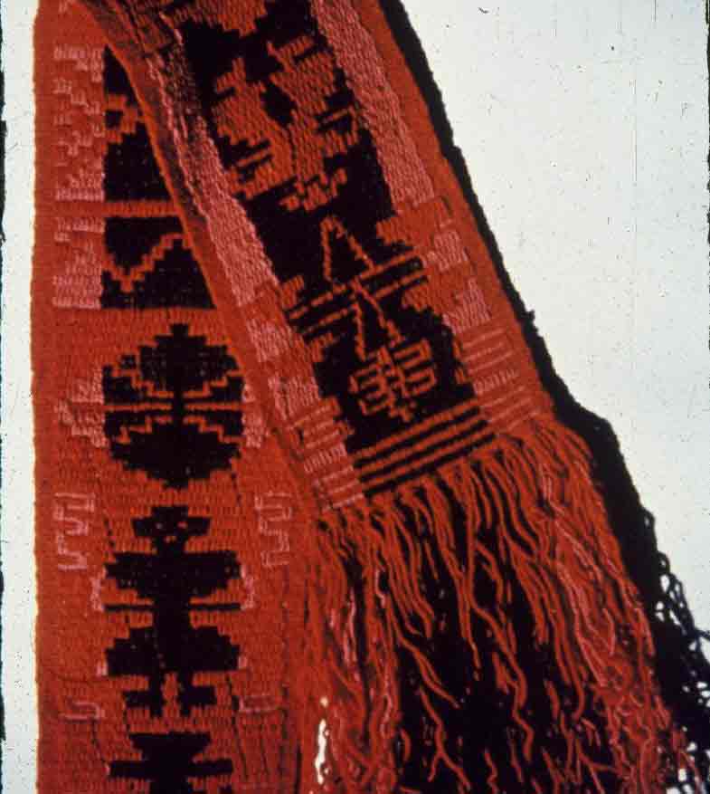 27 - Tejido Cayapa o Pihtahalli (falda de mujer) de forma rectangular y color ro...