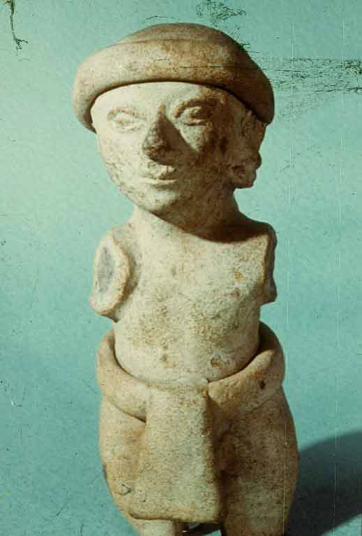 2255 - Vástago de pie de vasija fragmentado que representa una figura humana sede...