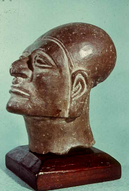 2246 - Fragmento de vástago de pie vasija sólida que representa una cabeza human...