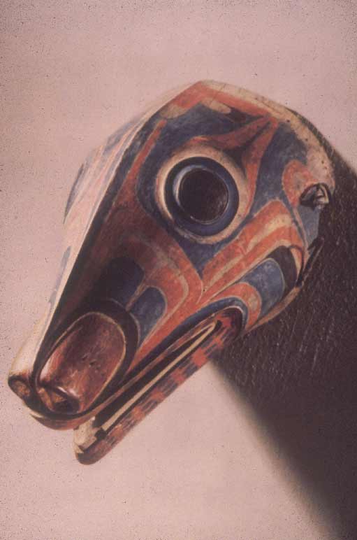 90 - Cabeza antropomorfa de madera de balsa que forma parte de un bastón. Tiene...