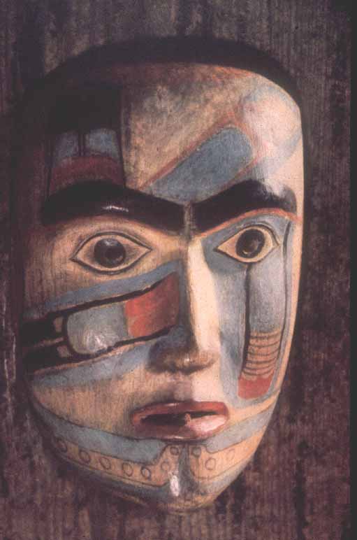 90 - Cabeza antropomorfa de madera de balsa que forma parte de un bastón. Tiene...