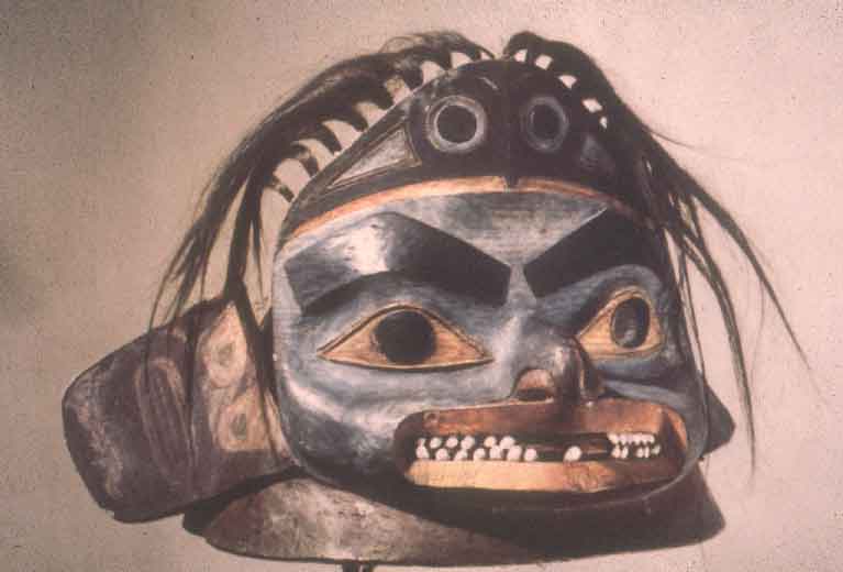 90 - Cabeza antropomorfa de madera de balsa que forma parte de un bastón. Tiene...