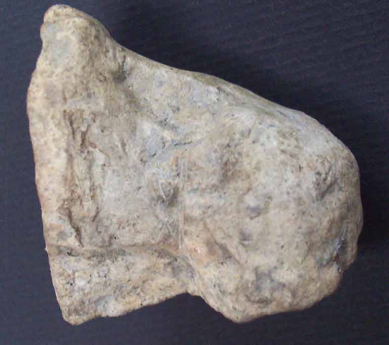2258 - Pie de vasija cerámica fragmentado representando una figura sólida humana...