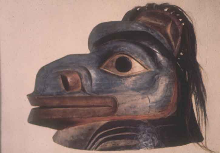 90 - Cabeza antropomorfa de madera de balsa que forma parte de un bastón. Tiene...
