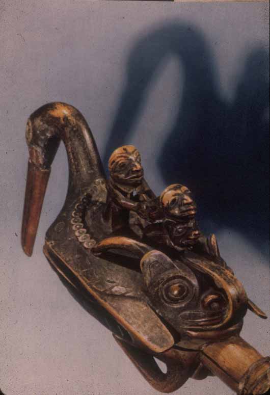 90 - Cabeza antropomorfa de madera de balsa que forma parte de un bastón. Tiene...