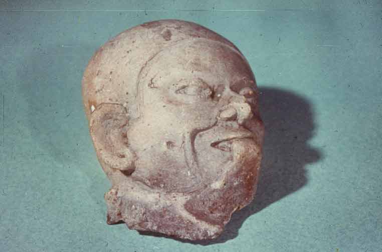 2246 - Fragmento de vástago de pie vasija sólida que representa una cabeza human...