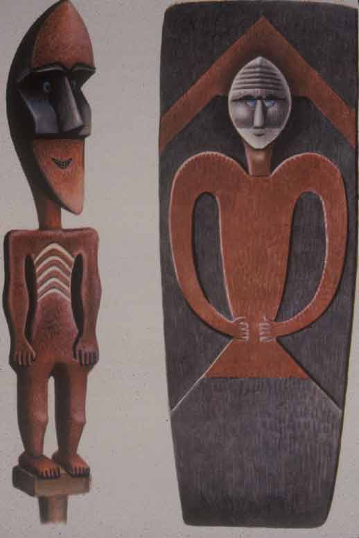 99 - Figura femenina tallada en madera de balsa de color marrón claro, de rasg...